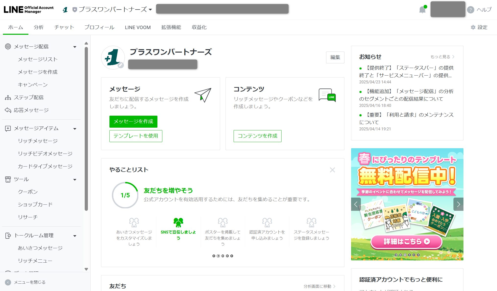 管理画面にログインできたら、LINE公式アカウントの作成は完了です!