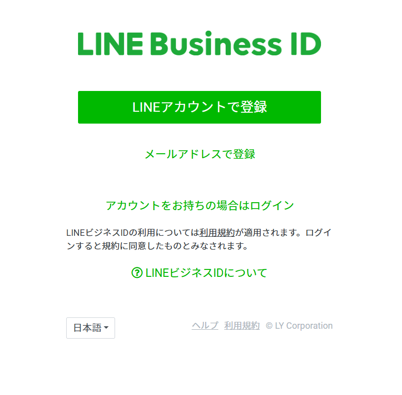 LINEが提供するビジネス向け、または開発者向けの各種管理画面にログインができる共通認証システムです。LINEビジネスIDをお持ちでない場合は、LINEアカウント、またはメールアドレスで登録ください。